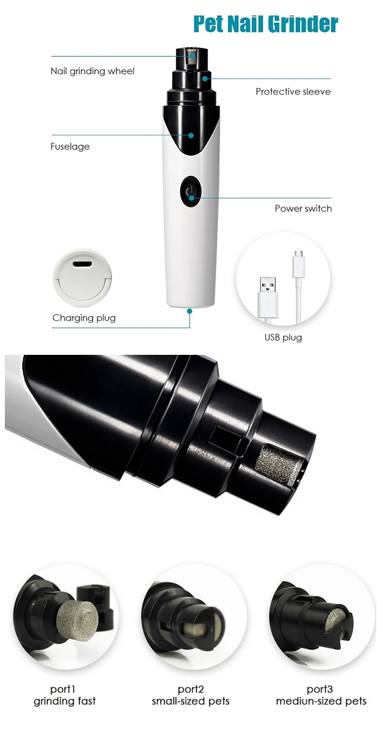 - USB Charging- Save money on buying batteries! This Pet's Nail Grinder comes with a USB port and cable (provided) that can continuously operate up to 3 hours once fully charged.